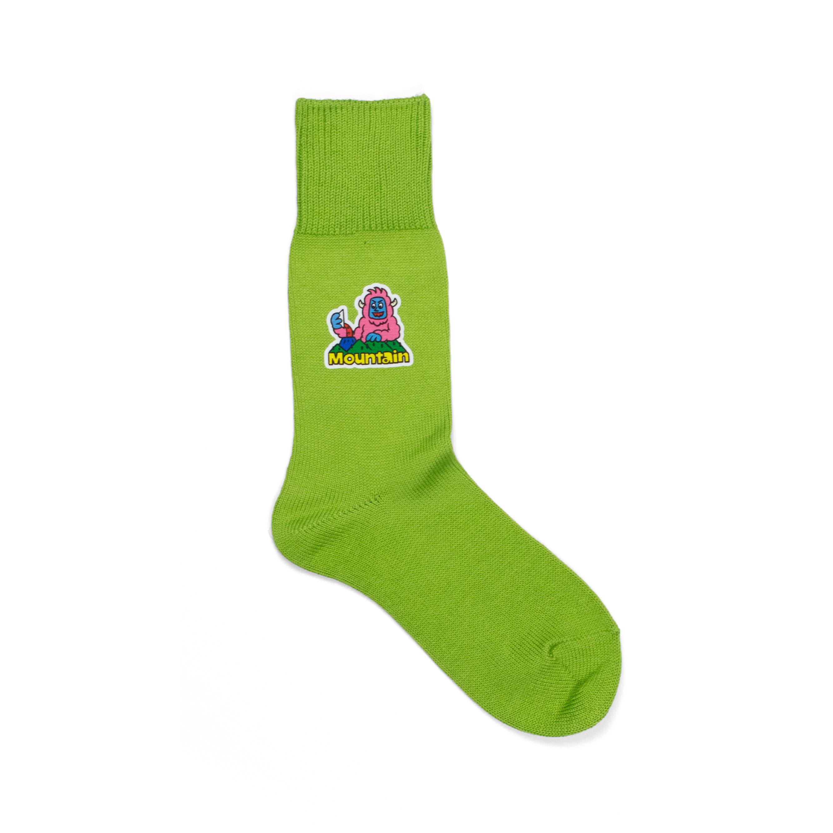 【made in Japan】nego socks Mountain 転写イラスト CREW SOCKS (lime green)NS-P01